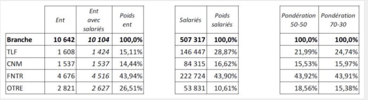 D’après le tableau des audiences de représentativité, l’OTRE représente 2821 entreprises (TPE et PME) et 53 831 salariés soit 10,61% de la branche et se positionnerait derrière la FNTR qui affiche 4676 entreprises et 224 726 employés. TLf comptabilise 1608 entreprises et 146 447 employés, CNM 1537 et 84 315 personnes.